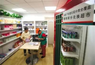 5月28日,東直門街道垃圾分類積分兌換超市里,一位居民正在使用積分兌換物品。
