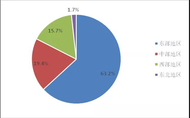圖4. 2018年列入統計的各區域環保企業數量占比